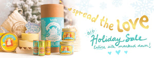 This happy, little gift bag is sure to bring a smile to the face of the lucky Booda who receives it! The biodegradable bag contains 3 of our most beloved, organic, vegan and sustainably-packaged products, as well as a sticker...